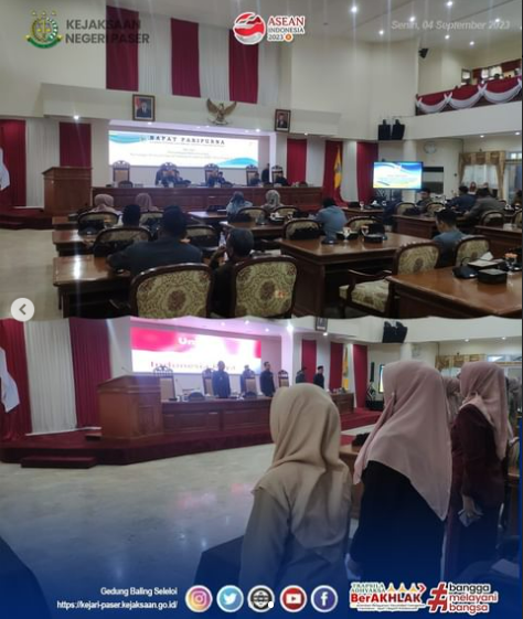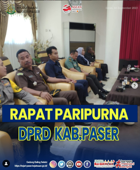Pada hari senin 04 September 2023, Kasubagbin Kejaksaan Negeri Paser Muh Zainal, S.H. menghadiri kegiatan undangan Rapat Paripurna DRPRD Kab. Paser dalam rangka Penyampaian Nota Keuangan Rancangan Perda tentang Perubahan APBD Tahun Anggaran 2023 tanggal 04 September 2023 bertempat di Gedung Baling Seleloi