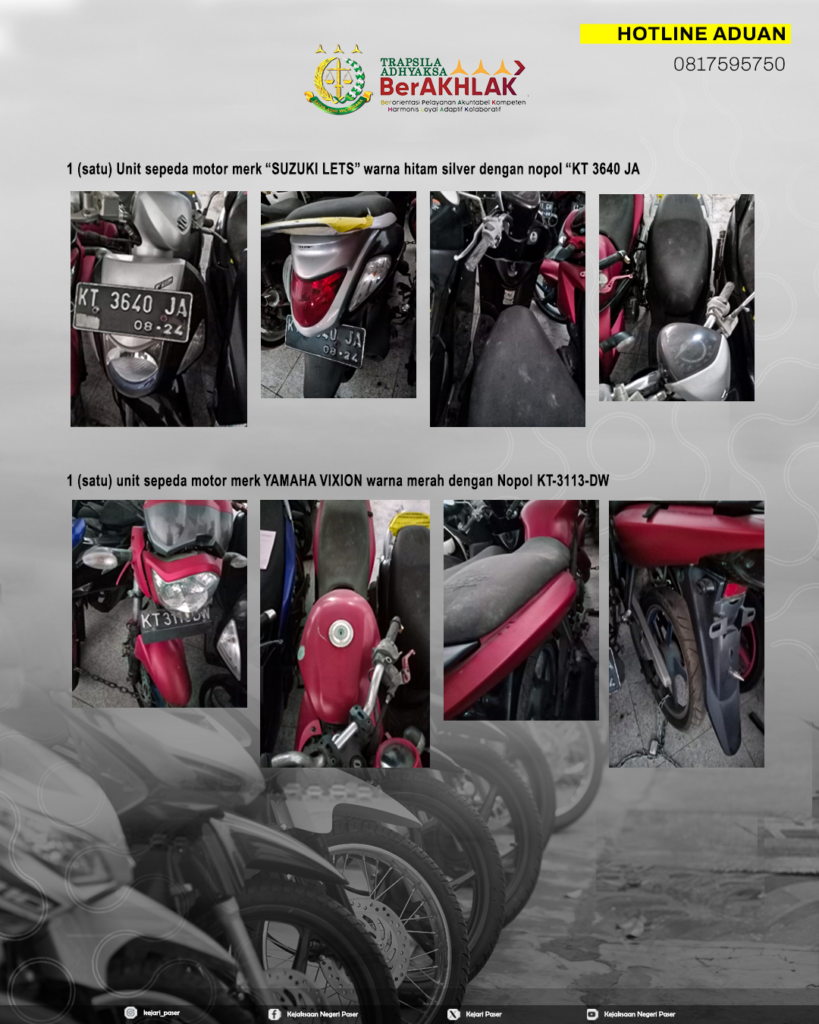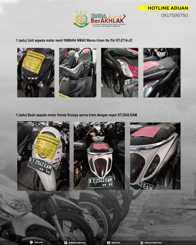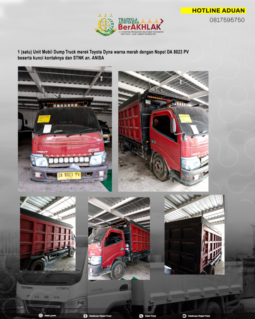 Kejaksaan Negeri Paser bersama KPKNL Balikpapan akan melaksanakan lelang eksekusi barang rampasan PAPBB secara online.